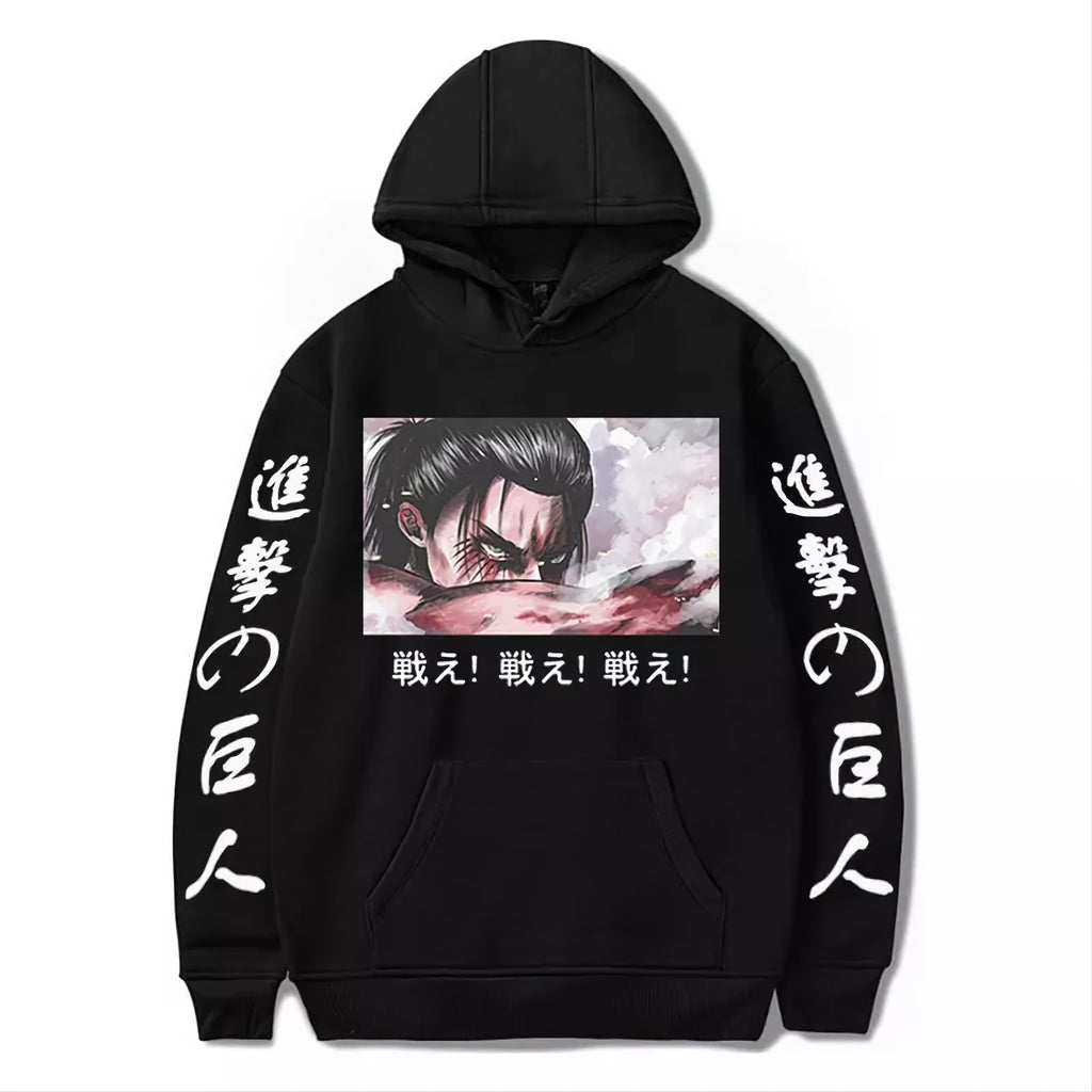 Entre na batalha pelo futuro com o moletom exclusivo de Eren Yeager de Attack on Titan! Este incrível moletom apresenta o protagonista determinado e corajoso do anime, Eren Yeager, em uma estampa marcante e autêntica. Combinando estilo e conforto, este moletom é perfeito para os fãs de anime que desejam homenagear o poderoso líder da Tropa de Exploração. Feito com materiais de alta qualidade, oferece durabilidade e resistência para enfrentar qualquer desafio. Vista-se com orgulho ao lado de Eren Yeager e mostre seu apoio à luta contra os Titãs com este moletom exclusivo. Sinta-se parte da resistência e mantenha viva a esperança com o moletom de Eren Yeager de Attack on Titan, disponível apenas na Você Nerd.